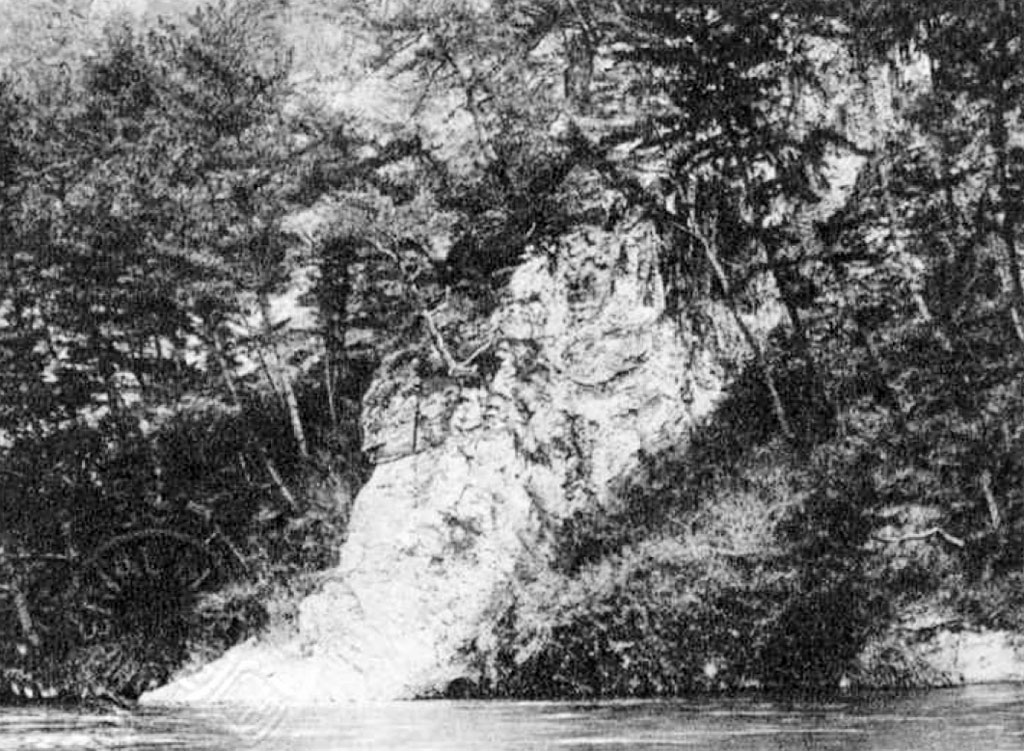 東觜崎驛の西北約一粁、揖保川の東岸越部村觜崎字鶴嘴山及神岡村大住寺字大源寺の鶴嘴山にあり。山は靑白色の凝灰質石英粗面岩より成り、西に向つて五〇度以上の急斜面をなし、この斜面に一大岩脈が屏風の如く突出して露はれ、屏風岩の名がある。走向南六五度東、山の斜面に略直角をなして突出し、その下脚は水中に沒し、厚さは約四、五米乃至七米餘、高さ多くは五米乃至八米、最高一二米に達し、河水面から岩脈の長さ七六米、海拔八〇米の處で斷絕して居る。一七米を隔てゝ再露出し、幅數米、高さ四米內外に減じ、長さ四五・五米にして再中絕し、三〇米を隔てゝ三度露出し、その幅八米以下、長さ四一米にして頂上に達し、頂上に於ける岩脈の幅は三米に足らず、海拔一六〇米である。この大岩脈の南方約二〇米を隔てゝ、更に三〇米の露出をなす一小岩脈がある。その下方は石英粗面岩と境界が判然せず、頂上に於ける高さ八・五米にして、南面に絕壁をなし、頂上の幅は四・八米にして、著しい柱狀節理をなし、岩脈が母岩の兩側面より冷卻して柱狀節理を形成する理を示す好標本である。屏風岩の母岩たる石英粗面岩は、地動力のために裂罅を生じ、地球內部の熔融體がこれに乘じて噴出し、石英安山岩の一大岩脈を形成した。この岩脈は母岩よりも硬いため、風化に後れて、母岩から屏風の如く突出するに至つたのである。岩脈はその合成たる角閃石が變化して、今は朽安山岩一名粒狀安山岩となつて、松樹、蘚苔、羊齒等がこれに生じ、暖地性羊齒である松葉蘭產地の最北限であらうと云ふ。附近では夏季鮎狩が行はれる。