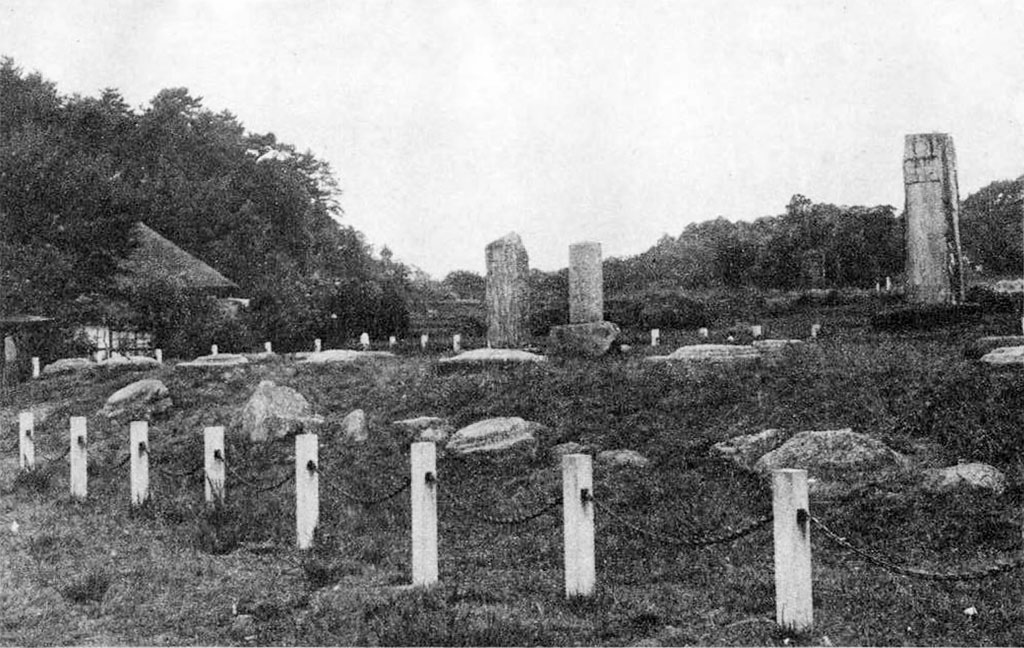 驛の北二粁、水城村にあり、自動車の便がある。宣化天皇の御代、宮家を那津に置いて西海道九國を總攪せしめ、兼ねて三韓に備へしめ給うたのが、太宰府の濫觴であるが、太宰の名の史上に始めて見えしは推古天皇十七年である。那津の官家が後の太宰府の地に移された年代も詳かでない。天智天皇の朝には太宰府が定置せられ、水城及大野、椽の二城を築いて府の防備とせられ、大寶令の制定によりて太宰府の官制が規定せられた。かくて西海諸國の統治と對外警備を兼ねて、蕃客饗讌の重要なる官衝となつた。奈良時代に至りて一旦廢せられて筑繁都督府が置かれたが、閒もなく舊に復した。
